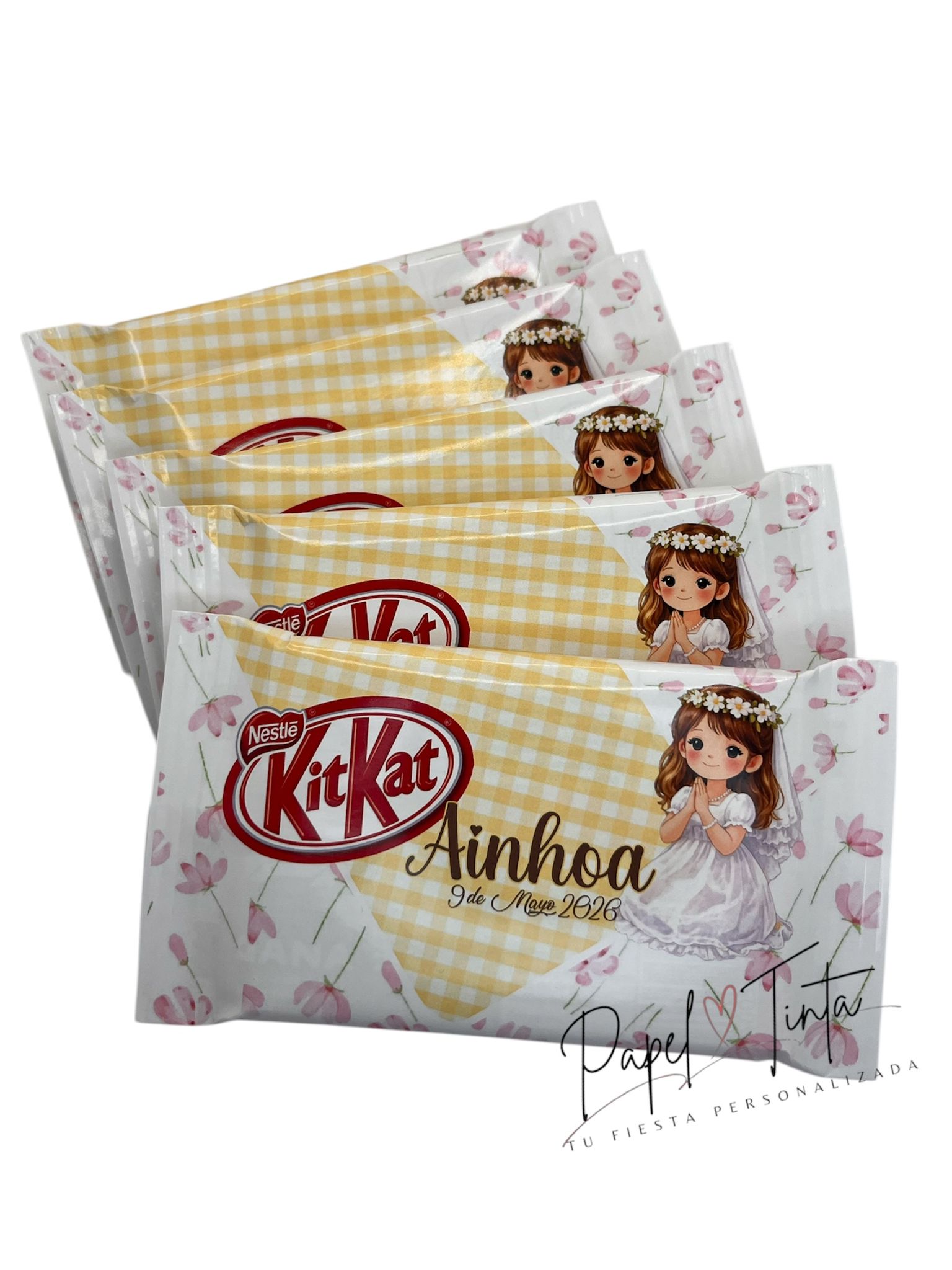 Haz de tu celebración un momento inolvidable con nuestro Kit Kat personalizado. Cada envoltura se diseña especialmente para tu evento, con detalles únicos que incluyen nombre, fecha y motivo decorativo del estilo que elijas.